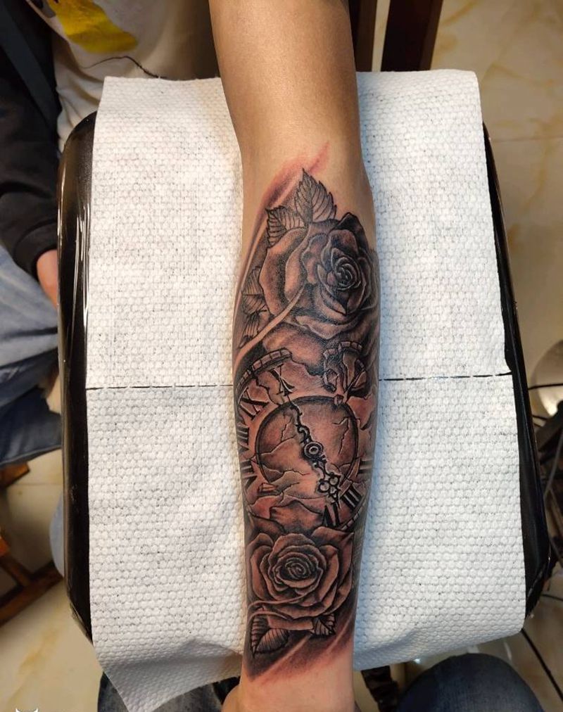 当前位置: 首页 >山西省太原市纹身店-太原翼龙刺青工作室纹身图案>欧美小臂纹身图片_手臂欧美写实新传统纹身图案