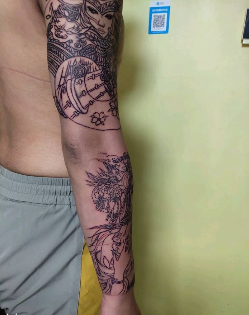 当前位置: 首页 >山西省太原市纹身店-太原翼龙刺青工作室纹身图案>花臂纹身图片_手臂新传统纹身图案