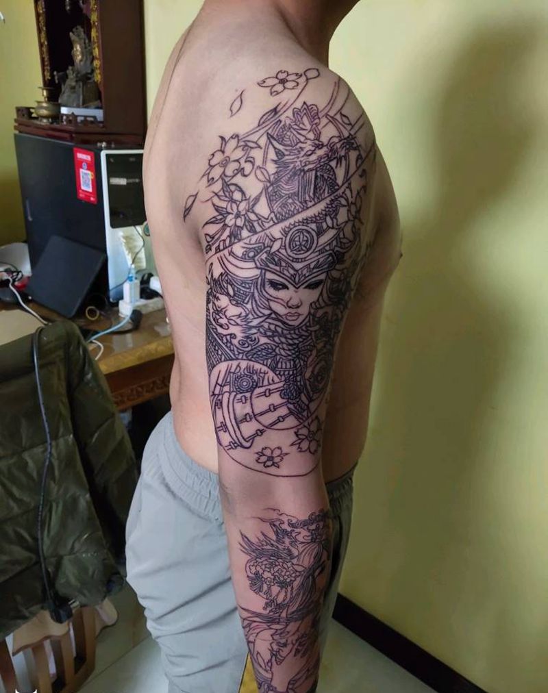 当前位置: 首页 >山西省太原市纹身店-太原翼龙刺青工作室纹身图案>花臂纹身图片_手臂新传统纹身图案
