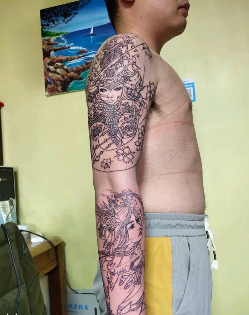当前位置: 首页 >山西省太原市纹身店-太原翼龙刺青工作室纹身图案>花臂纹身图片_手臂新传统纹身图案