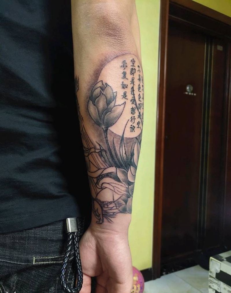荷塘月色纹身图片_手臂新传统纹身图案