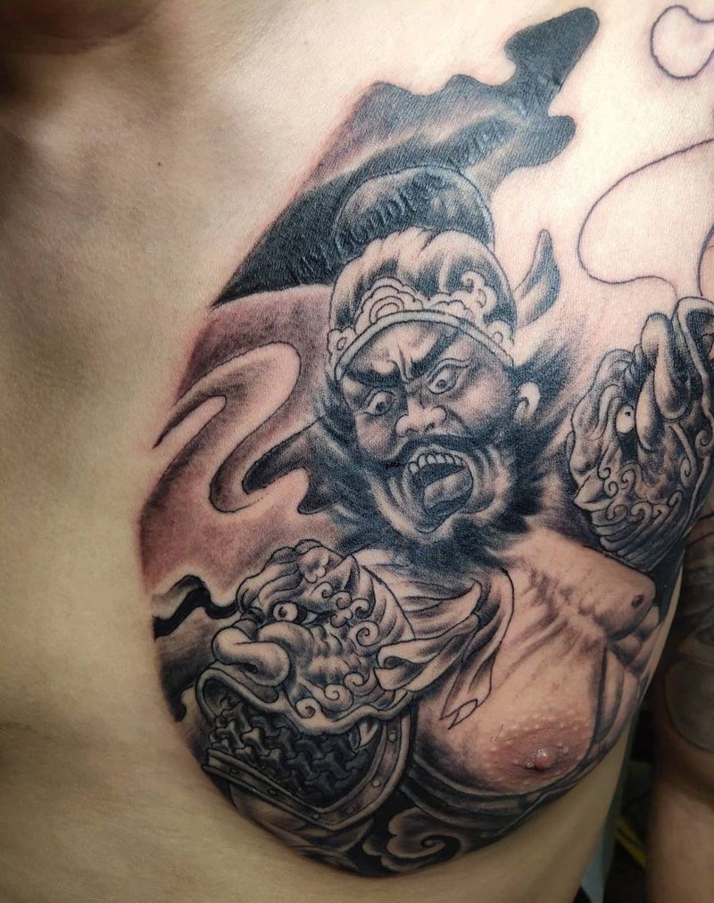 当前位置: 首页 >山西省太原市纹身店-太原翼龙刺青工作室纹身图案>老图半甲张飞纹身图片_胸部老传统纹身图案