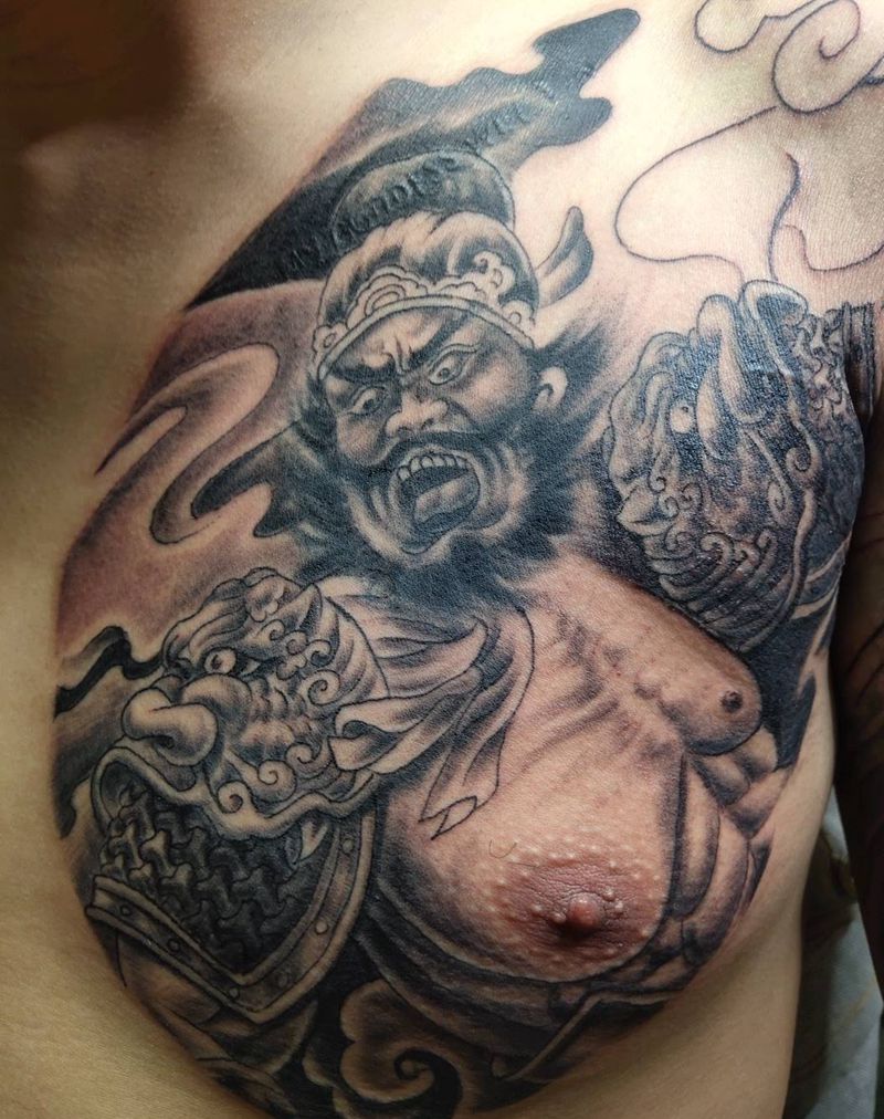 当前位置: 首页 >山西省太原市纹身店-太原翼龙刺青工作室纹身图案>老图半甲张飞纹身图片_胸部老传统纹身图案