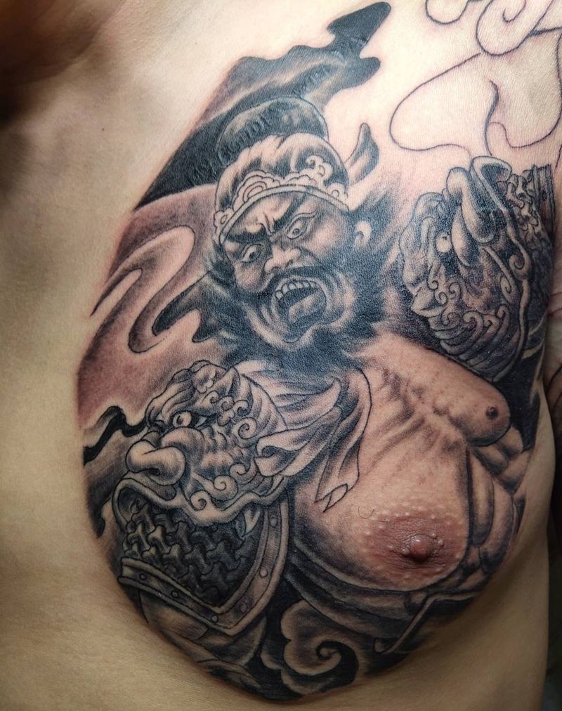当前位置: 首页 >山西省太原市纹身店-太原翼龙刺青工作室纹身图案>老图半甲张飞纹身图片_胸部老传统纹身图案