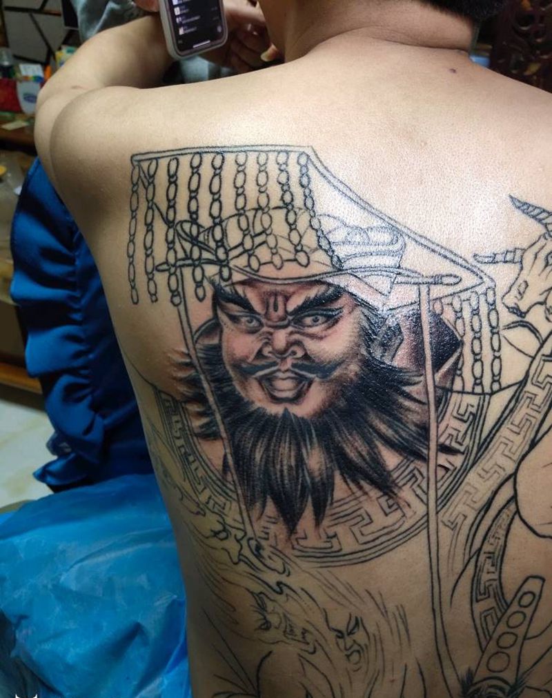 当前位置: 首页 >山西省太原市纹身店-太原翼龙刺青工作室纹身图案>阎王纹身图片_背部老传统纹身图案