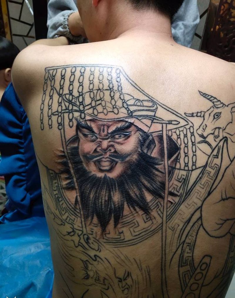 当前位置: 首页 >山西省太原市纹身店-太原翼龙刺青工作室纹身图案>阎王纹身图片_背部老传统纹身图案
