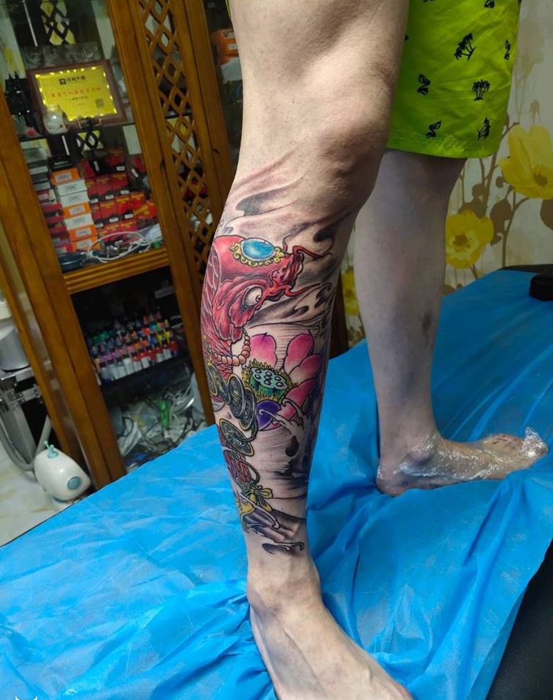 当前位置: 首页 >山西省太原市纹身店-太原翼龙刺青工作室纹身图案>招财鱼纹身图片_腿部新传统水彩纹身图案