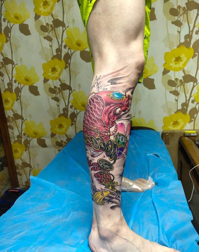 当前位置: 首页 >山西省太原市纹身店-太原翼龙刺青工作室纹身图案>招财鱼纹身图片_腿部新传统水彩纹身图案