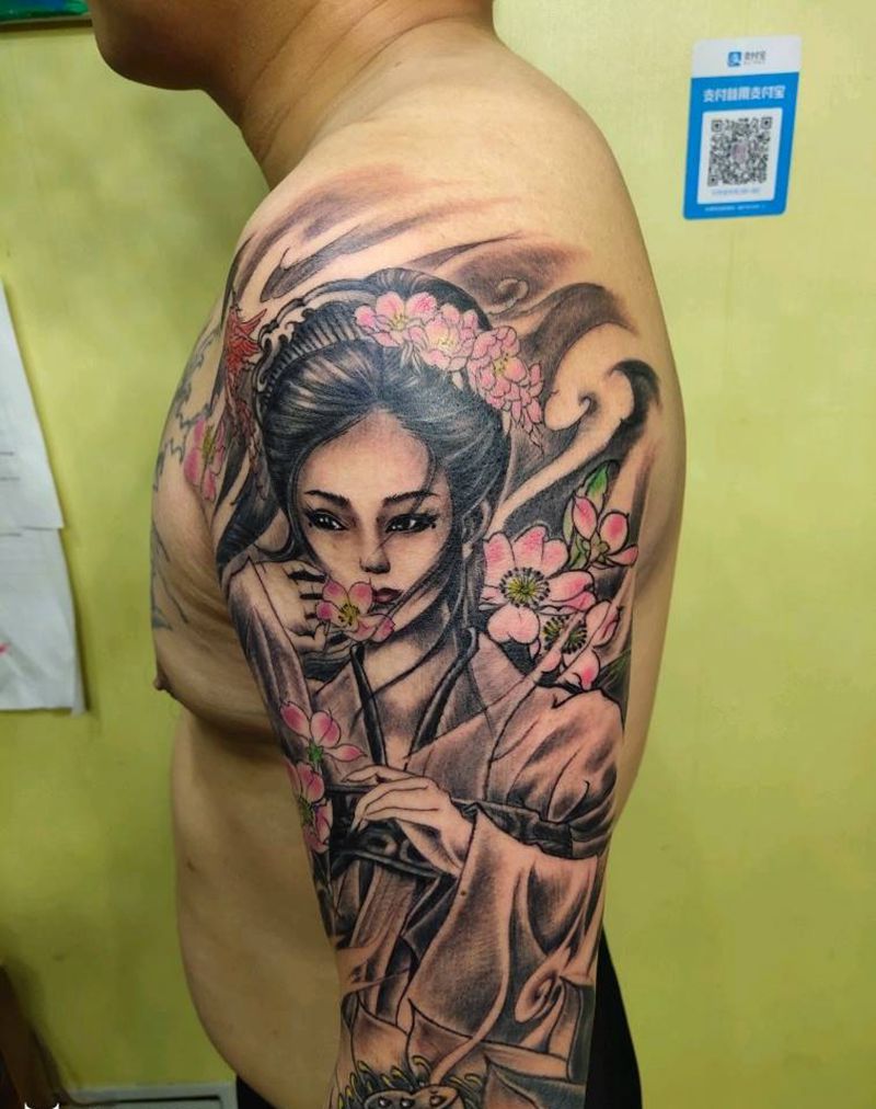 当前位置: 首页 >山西省太原市纹身店-太原翼龙刺青工作室纹身图案>花姬纹身图片_手臂新传统纹身图案