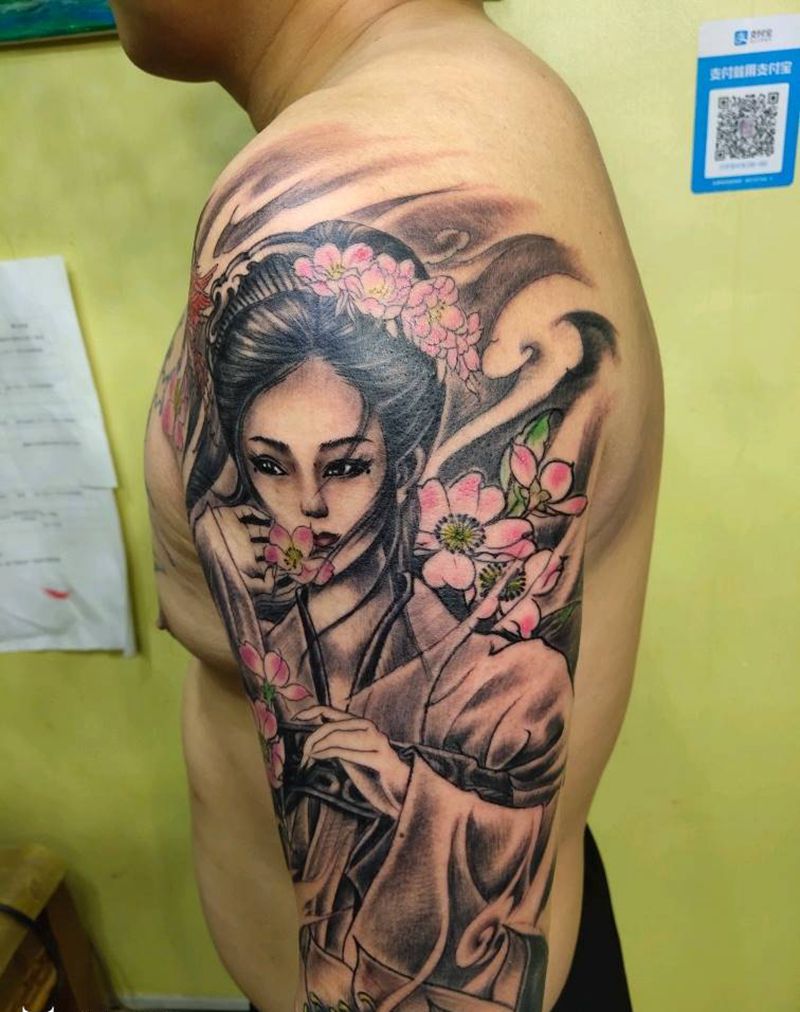 花姬纹身图片_手臂新传统纹身图案
