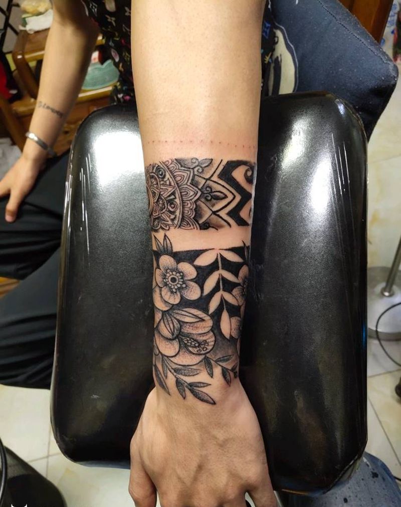 素花原创作品纹身图片_手臂点刺新传统原创纹身图案