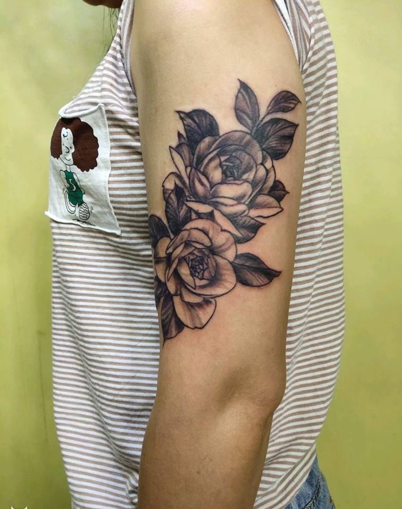 • 女性大花胸纹身_43张霸气漂亮的女性大花胸纹身图案作品