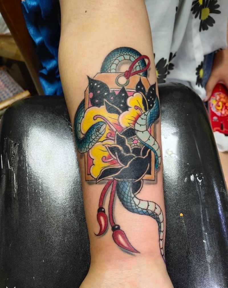 一组15张莲花纹身手