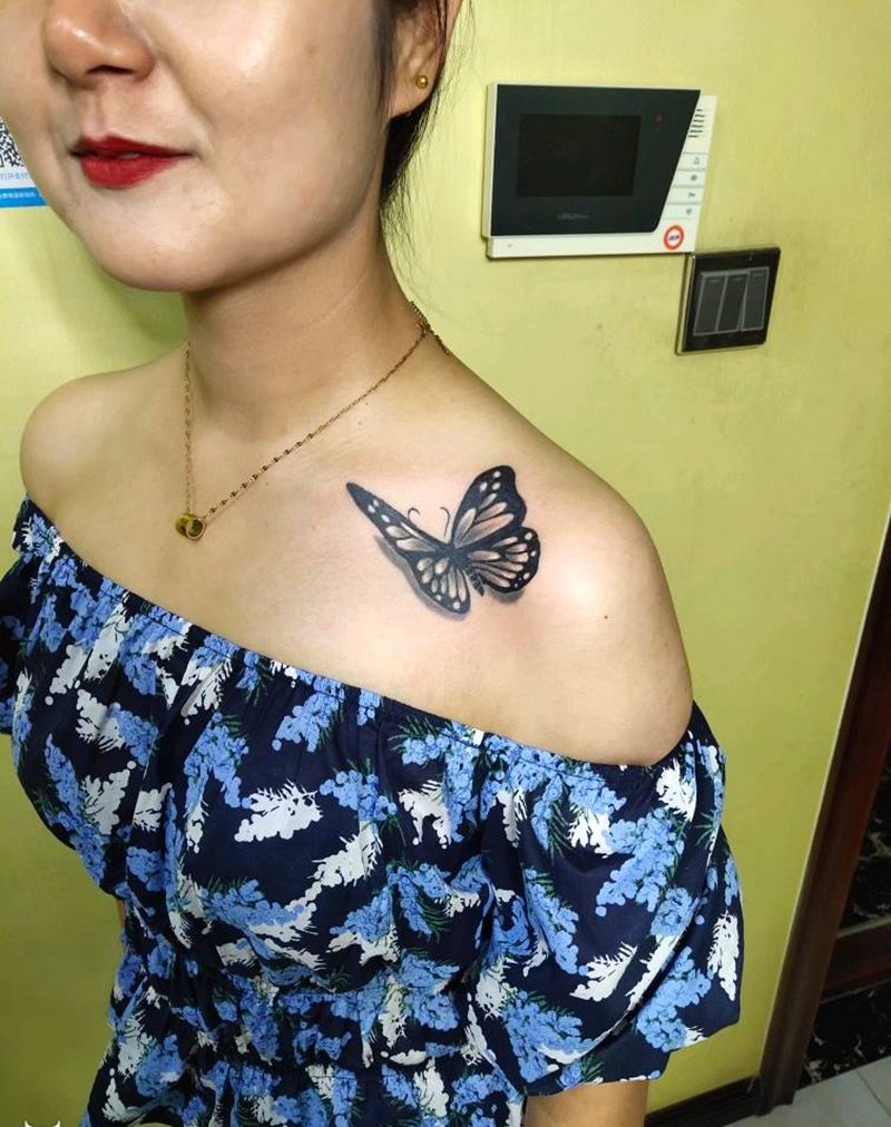 蝴蝶纹身图片_肩部纹身图案