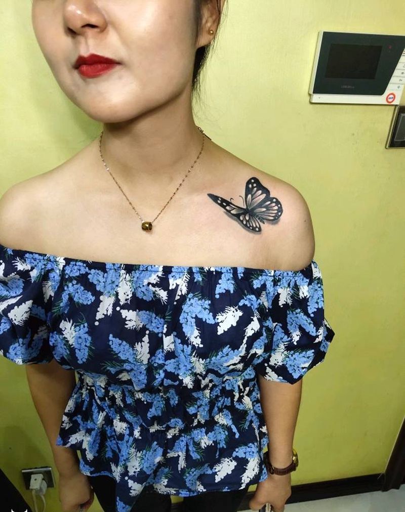 蝴蝶纹身图片_肩部纹身图案