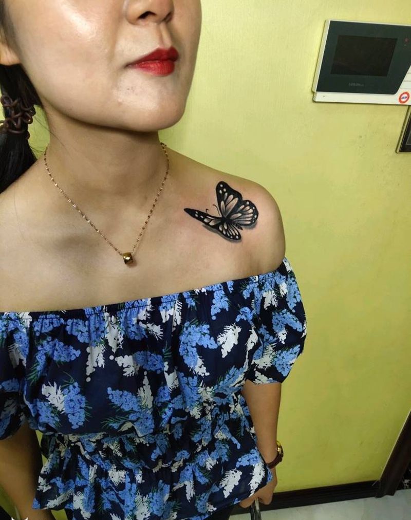 当前位置: 首页 >山西省太原市纹身店-太原翼龙刺青工作室纹身图案>蝴蝶纹身图片_肩部纹身图案