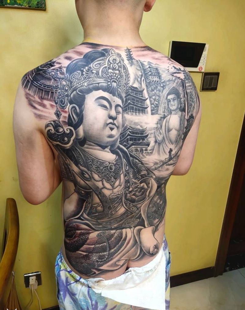 当前位置: 首页 >山西省太原市纹身店-太原翼龙刺青工作室纹身图案>普贤菩萨纹身图片_背部纹身图案