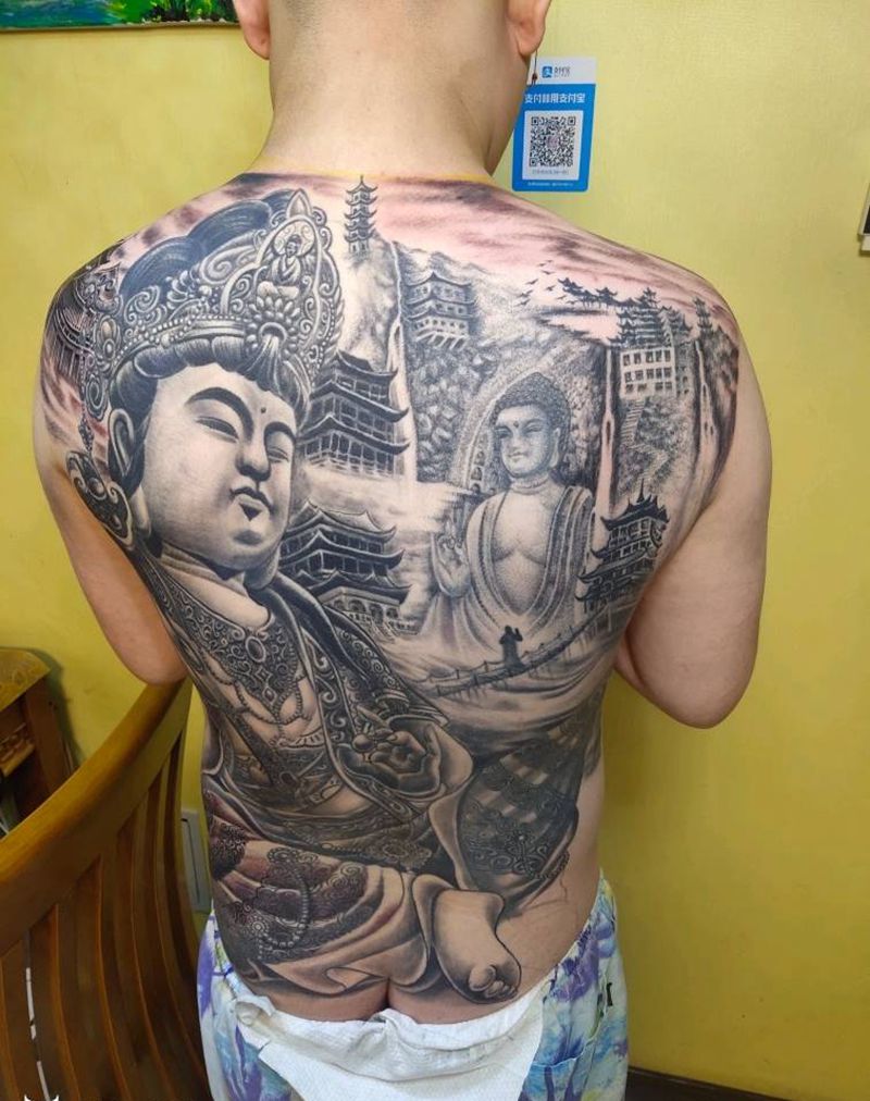 普贤菩萨纹身图片_背部纹身图案