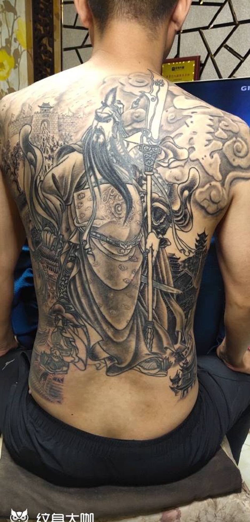当前位置: 首页 >山西省太原市纹身店-太原翼龙刺青工作室纹身图案>老关公加满背纹身图片_背部新传统纹身图案