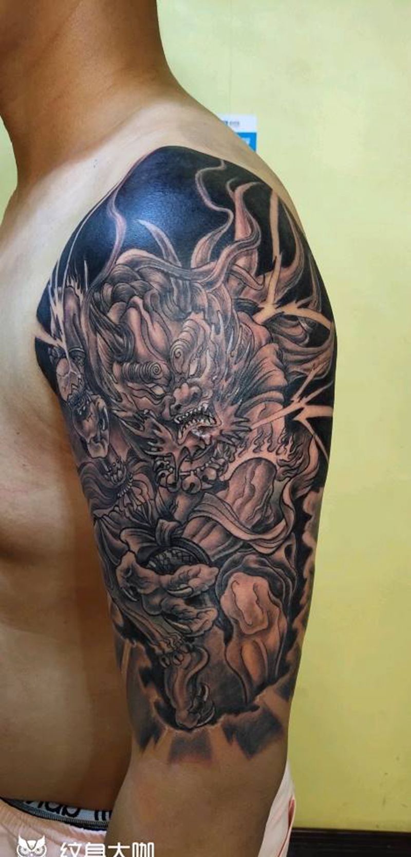当前位置: 首页 >山西省太原市纹身店-太原翼龙刺青工作室纹身图案>雷神纹身图片_手臂新传统纹身图案