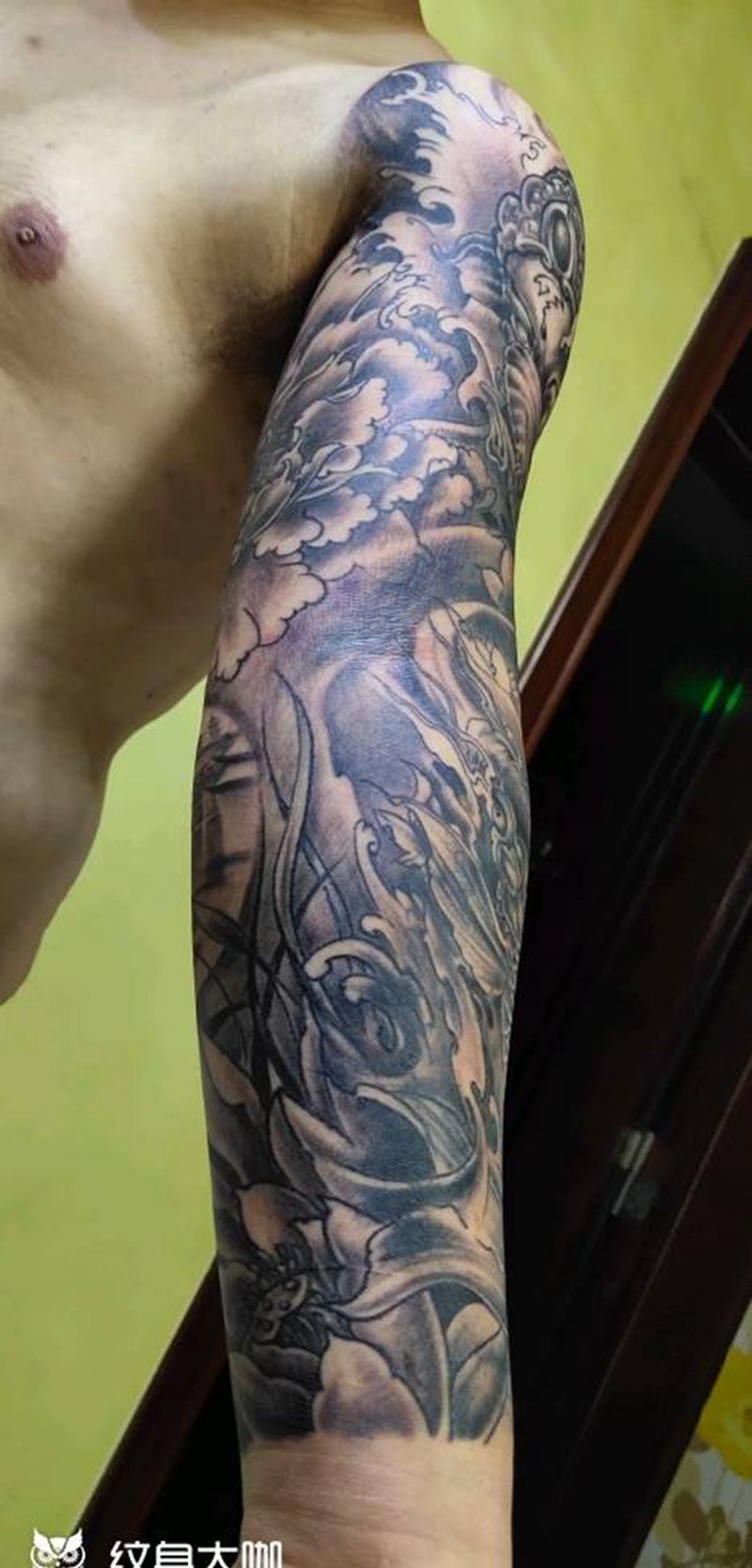 当前位置: 首页 >山西省太原市纹身店-太原翼龙刺青工作室纹身图案>象神锦鲤花荷花臂纹身图片_手臂新传统纹身图案
