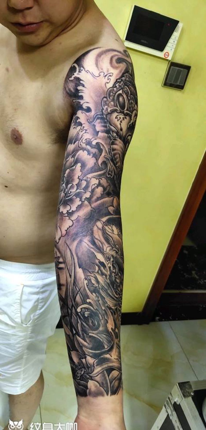 当前位置: 首页 >山西省太原市纹身店-太原翼龙刺青工作室纹身图案>象神锦鲤花荷花臂纹身图片_手臂新传统纹身图案