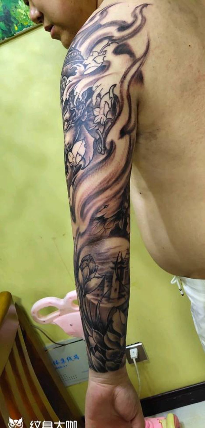 当前位置: 首页 >山西省太原市纹身店-太原翼龙刺青工作室纹身图案>象神锦鲤花荷花臂纹身图片_手臂新传统纹身图案