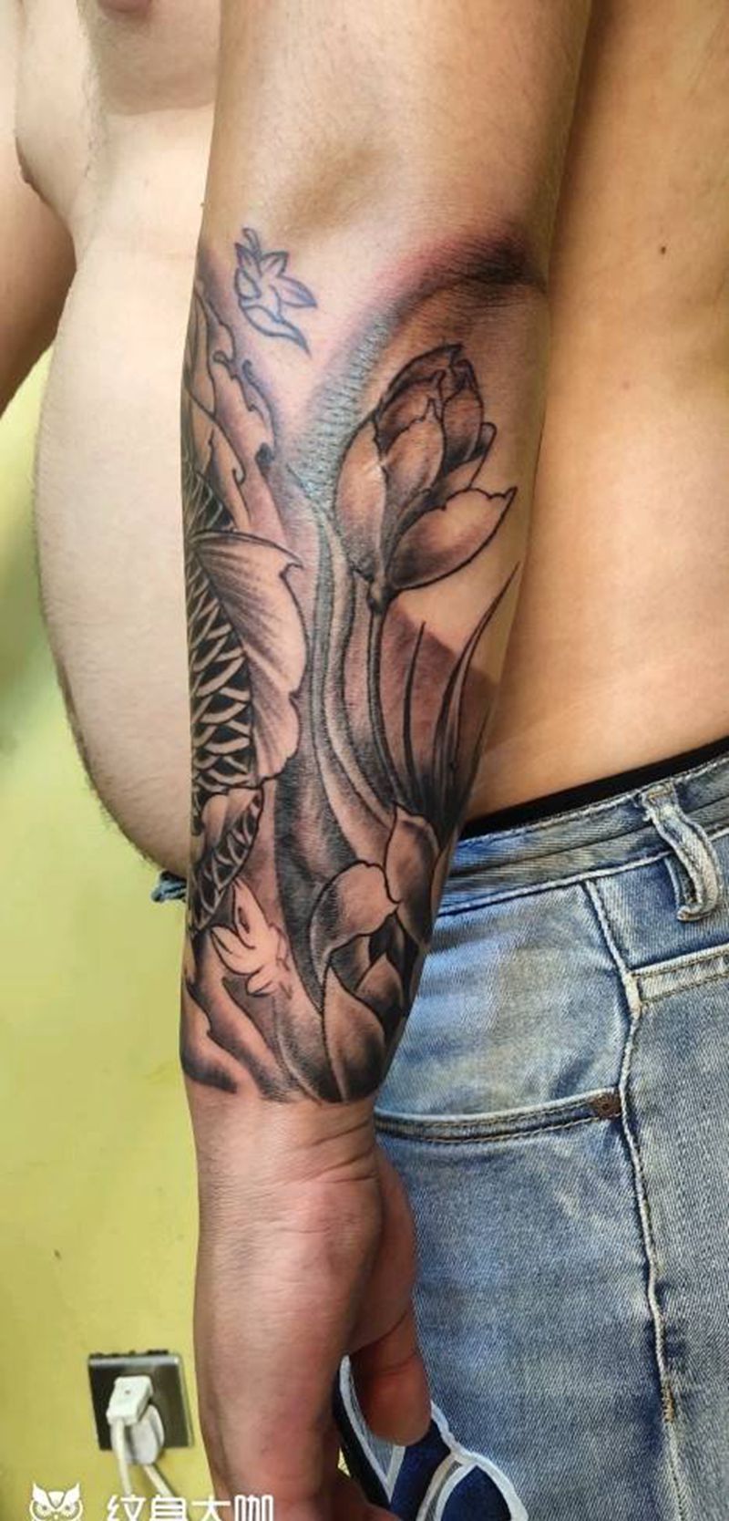 当前位置: 首页 >山西省太原市纹身店-太原翼龙刺青工作室纹身图案>花臂进行中纹身图片_手臂新传统纹身图案