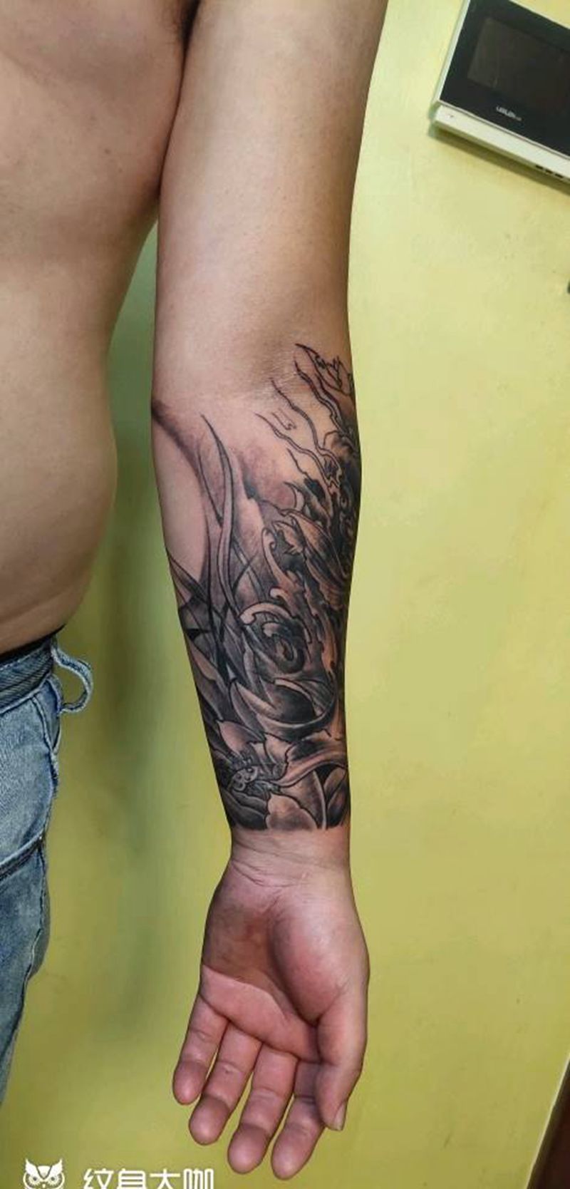 当前位置: 首页 >山西省太原市纹身店-太原翼龙刺青工作室纹身图案>花臂进行中纹身图片_手臂新传统纹身图案