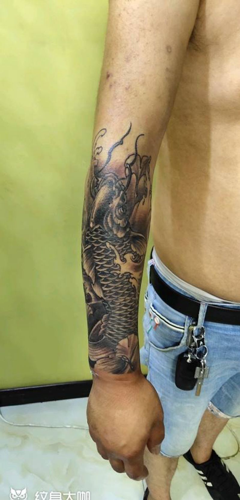 当前位置: 首页 >山西省太原市纹身店-太原翼龙刺青工作室纹身图案>招财鱼纹身图片_手臂新传统纹身图案