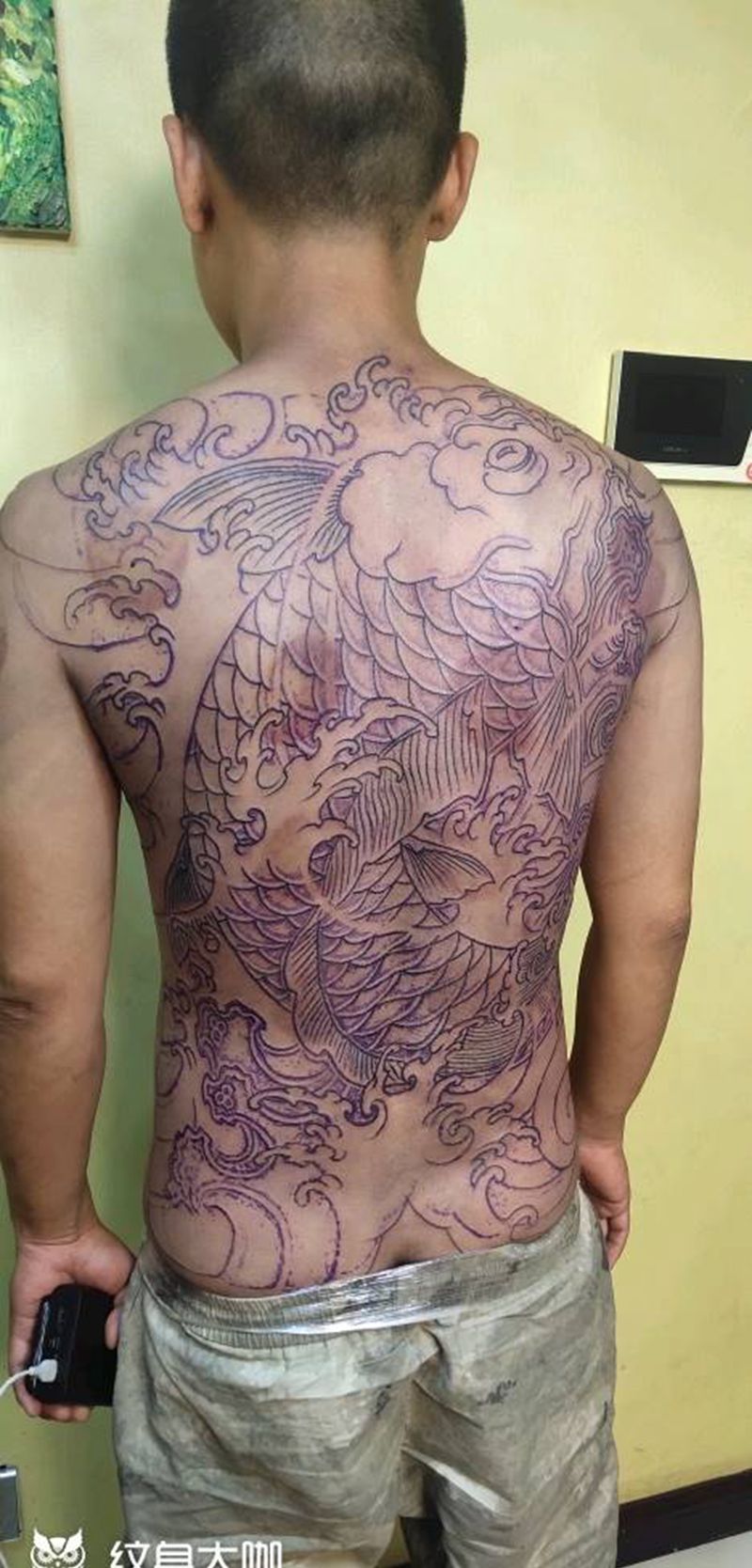 当前位置: 首页 >山西省太原市纹身店-太原翼龙刺青工作室纹身图案>日式满背招财鱼纹身图片_背部老传统纹身图案