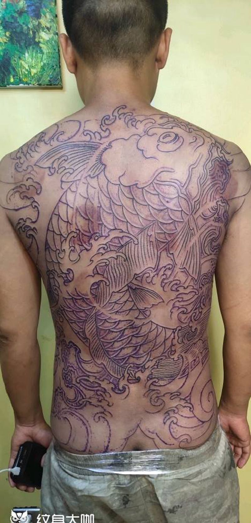 当前位置: 首页 >山西省太原市纹身店-太原翼龙刺青工作室纹身图案>日式满背招财鱼纹身图片_背部老传统纹身图案