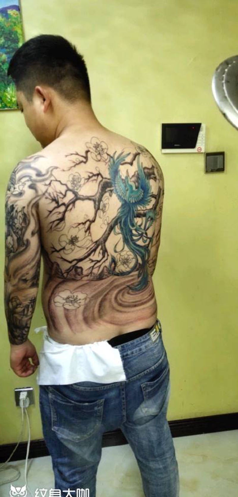 当前位置: 首页 >山西省太原市纹身店-太原翼龙刺青工作室纹身图案>手绘抖音网红图纹身图片_背部新传统纹身图案