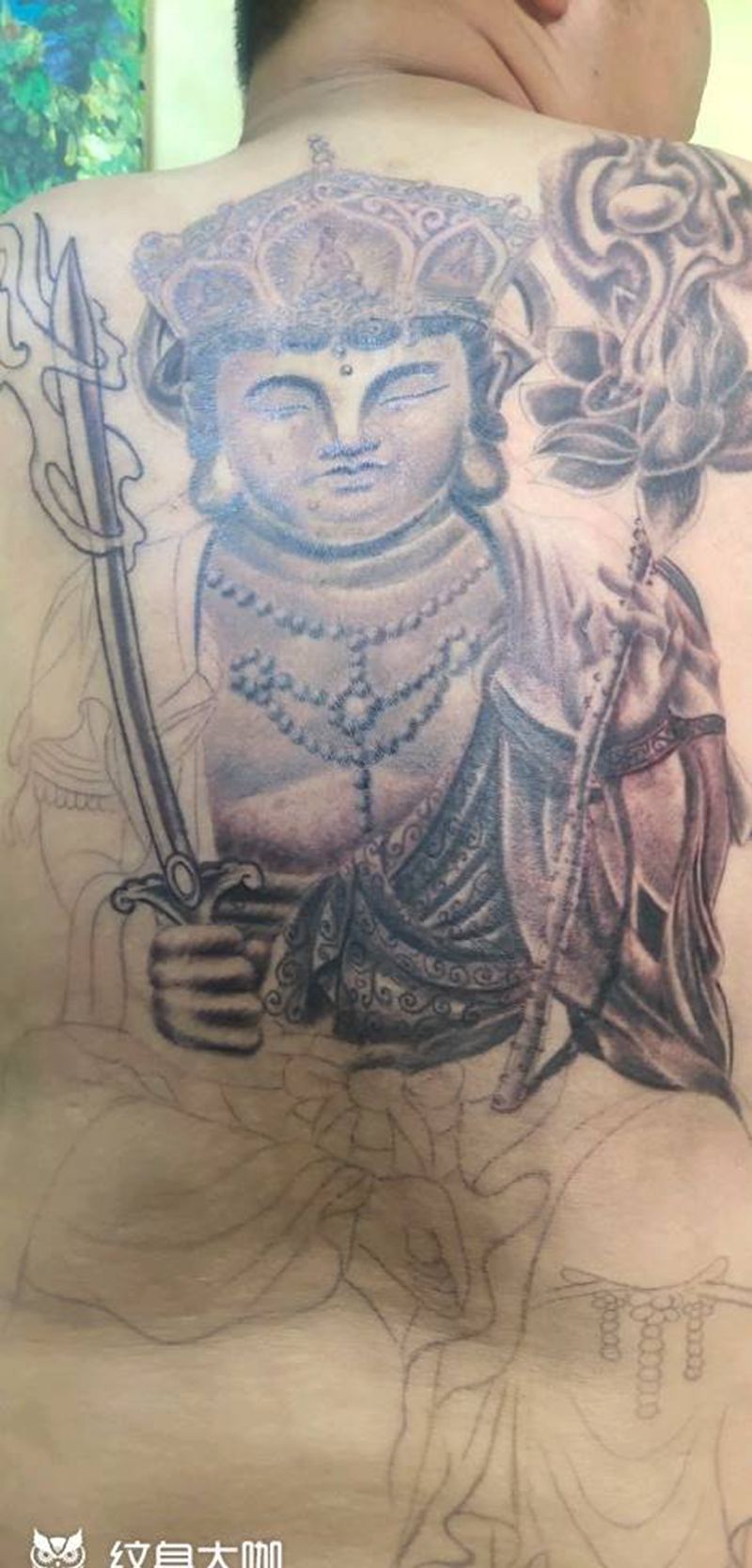 当前位置: 首页 >山西省太原市纹身店-太原翼龙刺青工作室纹身图案>虚空藏菩萨纹身图片_背部新传统纹身图案