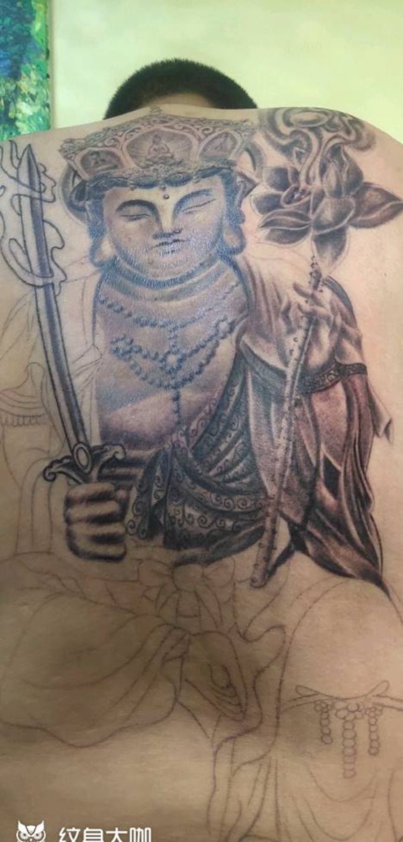 当前位置: 首页 >山西省太原市纹身店-太原翼龙刺青工作室纹身图案>虚空藏菩萨纹身图片_背部新传统纹身图案