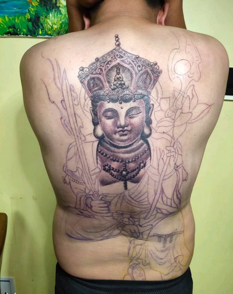 当前位置: 首页 >山西省太原市纹身店-太原翼龙刺青工作室纹身图案>菩萨纹身图片_背部纹身图案