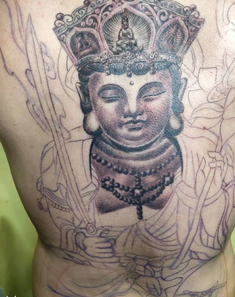 当前位置: 首页 >山西省太原市纹身店-太原翼龙刺青工作室纹身图案>菩萨纹身图片_背部纹身图案