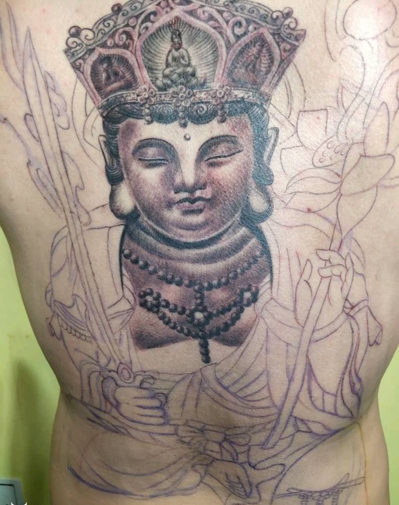 当前位置: 首页 >山西省太原市纹身店-太原翼龙刺青工作室纹身图案>菩萨纹身图片_背部纹身图案