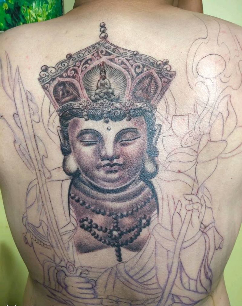 当前位置: 首页 >山西省太原市纹身店-太原翼龙刺青工作室纹身图案>菩萨纹身图片_背部纹身图案