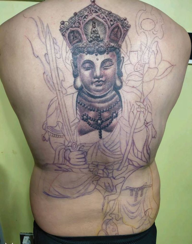 当前位置: 首页 >山西省太原市纹身店-太原翼龙刺青工作室纹身图案>菩萨纹身图片_背部纹身图案