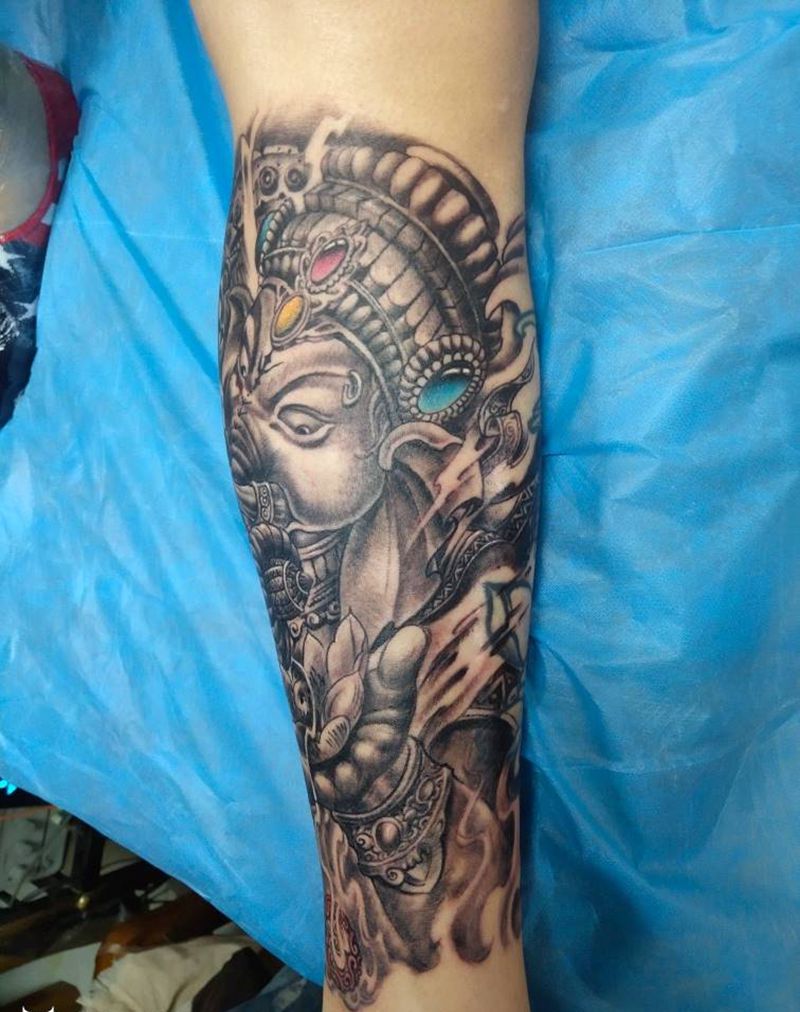 当前位置: 首页 >山西省太原市纹身店-太原翼龙刺青工作室纹身图案>象神纹身图片_腿部新传统纹身图案