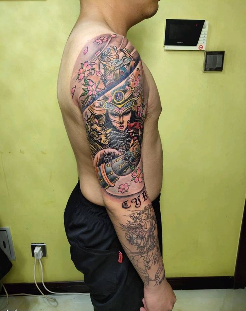 当前位置: 首页 >山西省太原市纹身店-太原翼龙刺青工作室纹身图案>女鬼武士翼龙版本纹身图片_手臂新传统New School纹身图案