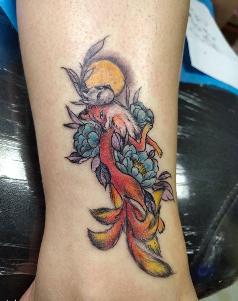 九尾狐纹身图片_脚部腿部New School新传统纹身图案