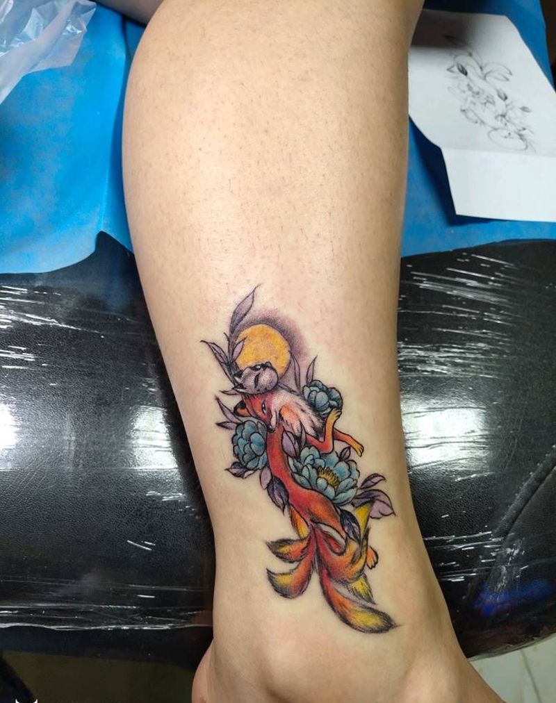 当前位置: 首页 >山西省太原市纹身店-太原翼龙刺青工作室纹身图案>九尾狐纹身图片_脚部腿部New School新传统纹身图案