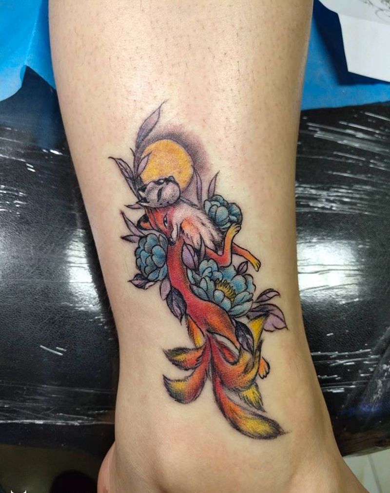 九尾狐纹身图片_脚部腿部New School新传统纹身图案