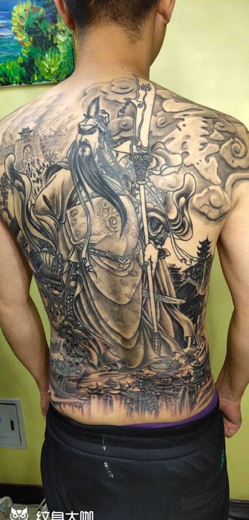 当前位置: 首页 >山西省太原市纹身店-太原翼龙刺青工作室纹身图案>老关公改满背纹身图片_背部新传统纹身图案
