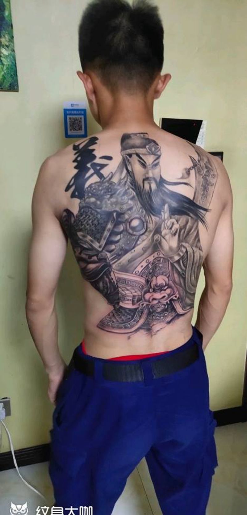 黑灰满背纹身图案