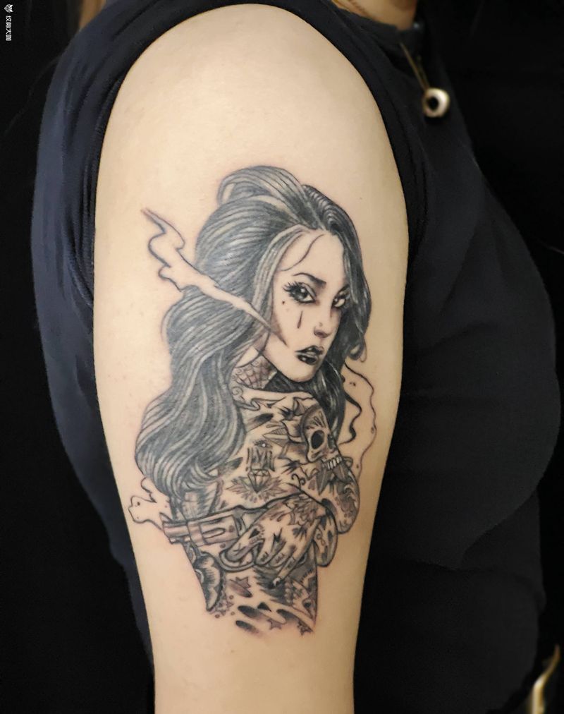 当前位置: 首页 >山西省太原市纹身店-太原翼龙刺青工作室纹身图案>欧美美女纹身图片_手臂新传统纹身图案