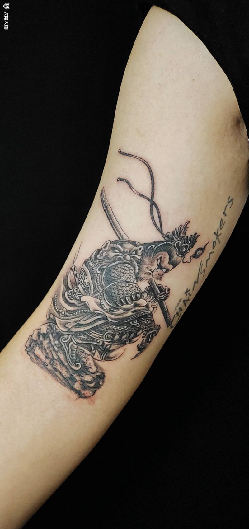 当前位置: 首页 >山西省太原市纹身店-太原翼龙刺青工作室纹身图案>孙悟空纹身图片_手臂新传统纹身图案