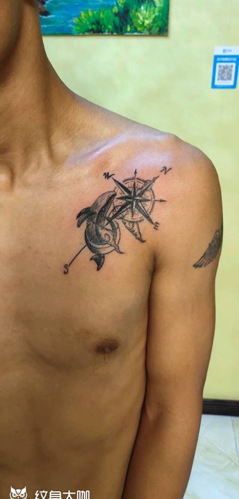 当前位置: 首页 >山西省太原市纹身店-太原翼龙刺青工作室纹身图案>指南针鲸鱼纹身图片_胸部新传统纹身图案
